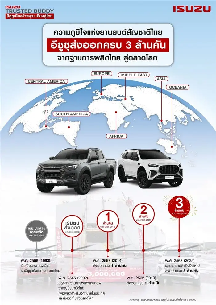 - พ.ศ. 2568 ส่งออกครบ 3 ล้านคัน