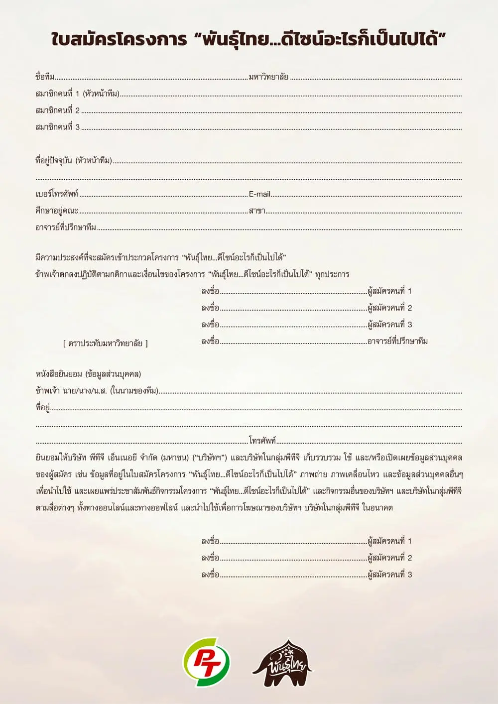 ผู้สนใจสามารถดาวน์โหลดใบสมัครได้ที่ลิงค์: https://bit.ly/403BiDc และส่งผลงานผ่านทางอีเมล: bkkdesigncontest@assemblyglobal.com ตั้งแต่วันนี้ ถึงวันที่ 24 เมษายน 2569 (เวลา 23.59 น.) สอบถามข้อมูลเพิ่มเติมได้ที่ โทร. 092 135 1419 ติดตามความเคลื่อนไหวและรายละเอียดเพิ่มเติมได้ทาง เฟซบุ๊ค: http://www.facebook.com/PunthaiDesignContest (พันธุ์ไทยดีไซน์อะไรก็เป็นไปได้)