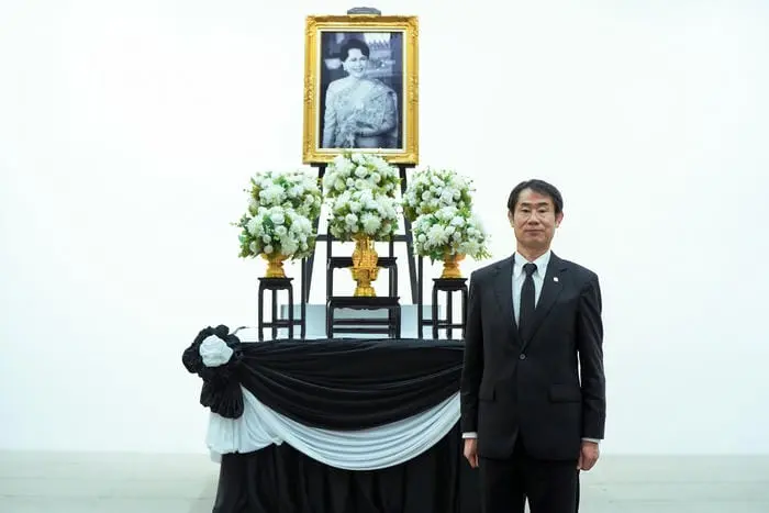 ในพิธีถวายอาลัยซึ่งจัดขึ้นที่ห้องประชุมชั้น 20 ของอาคารสำนักงานใหญ่นั้น มร. ทาคาชิ ฮาตะ กรรมการผู้จัดการ บริษัท ตรีเพชรอีซูซุเซลส์ จำกัด เป็นผู้กล่าวนำ โดยมี คณะผู้บริหารของบริษัทในกลุ่มตรีเพชรร่วมยืนสงบนิ่งเป็นเวลา 3 นาที หลังจากนั้นได้ร่วมกันร้องเพลงสรรเสริญพระบารมี และก้มศีรษะกราบสงบนิ่งเป็นเวลา 30 วินาที เพื่อถวายบังคมและน้อมสำนึกในพระมหากรุณาธิคุณอันหาที่สุดมิได้ของสมเด็จพระนางเจ้าสิริกิติ์ พระบรมราชินีนาถ พระบรมราชชนีพันปีหลวง ที่ทรงมีต่อทั้งปวงชนชาวไทยและประเทศไทยตลอดพระชนม์ชีพของพระองค์ท่าน