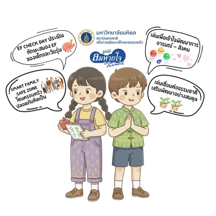 มูลนิธิลมหายใจไร้มลทิน ร่วมกับ สถาบันแห่งชาติเพื่อการพัฒนาเด็กและครอบครัว ม.มหิดล เชิญชวนทุกครอบครัว “สร้างภูมิคุ้มกันใจ เด็กไทยเข้มแข็ง” ภายใต้แนวคิด “Inner Growth Playground: Smart Mind - Safe Heart - Nature Balance”