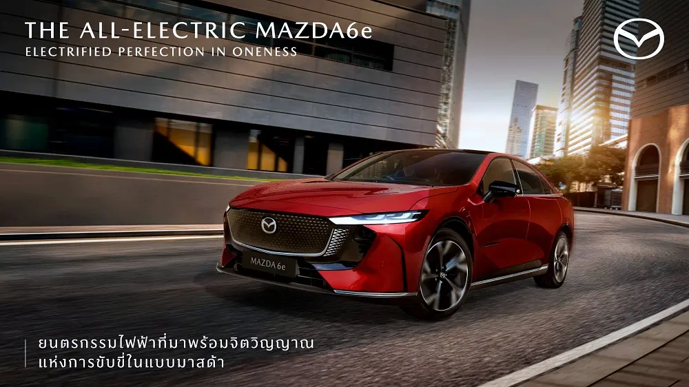 มาสด้าเปิดตัว Mazda Mazda6e 2026 รถยนต์ไฟฟ้า 100% แบตเตอรี่ 77.9 kWh วิ่งไกล 654 กม. ราคาเริ่มต้น 1,169,000 บาท พร้อมแพ็กเกจดูแลรถนาน 8 ปีเต็ม