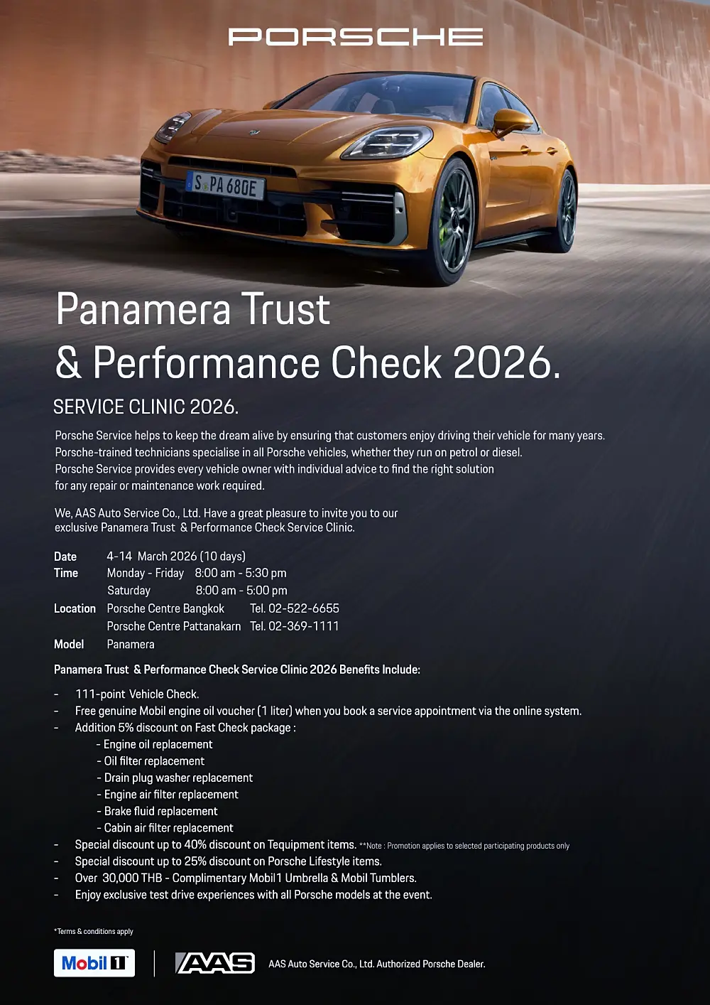 AAS ออกโปรฯ ตรวจรถ Porsche Panamera 2026 ฟรี 111 จุด